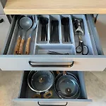 Riga luchthaven is op 20 km van deze 1-badkamer accommodatie.